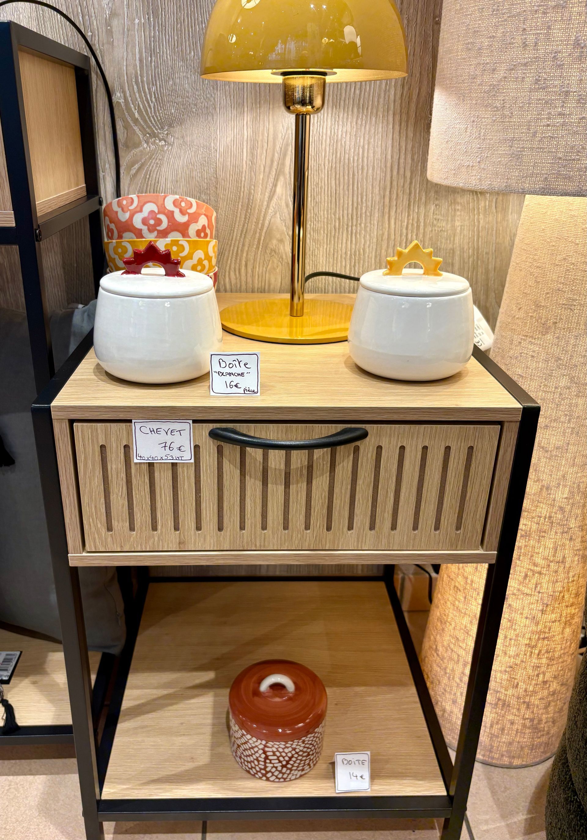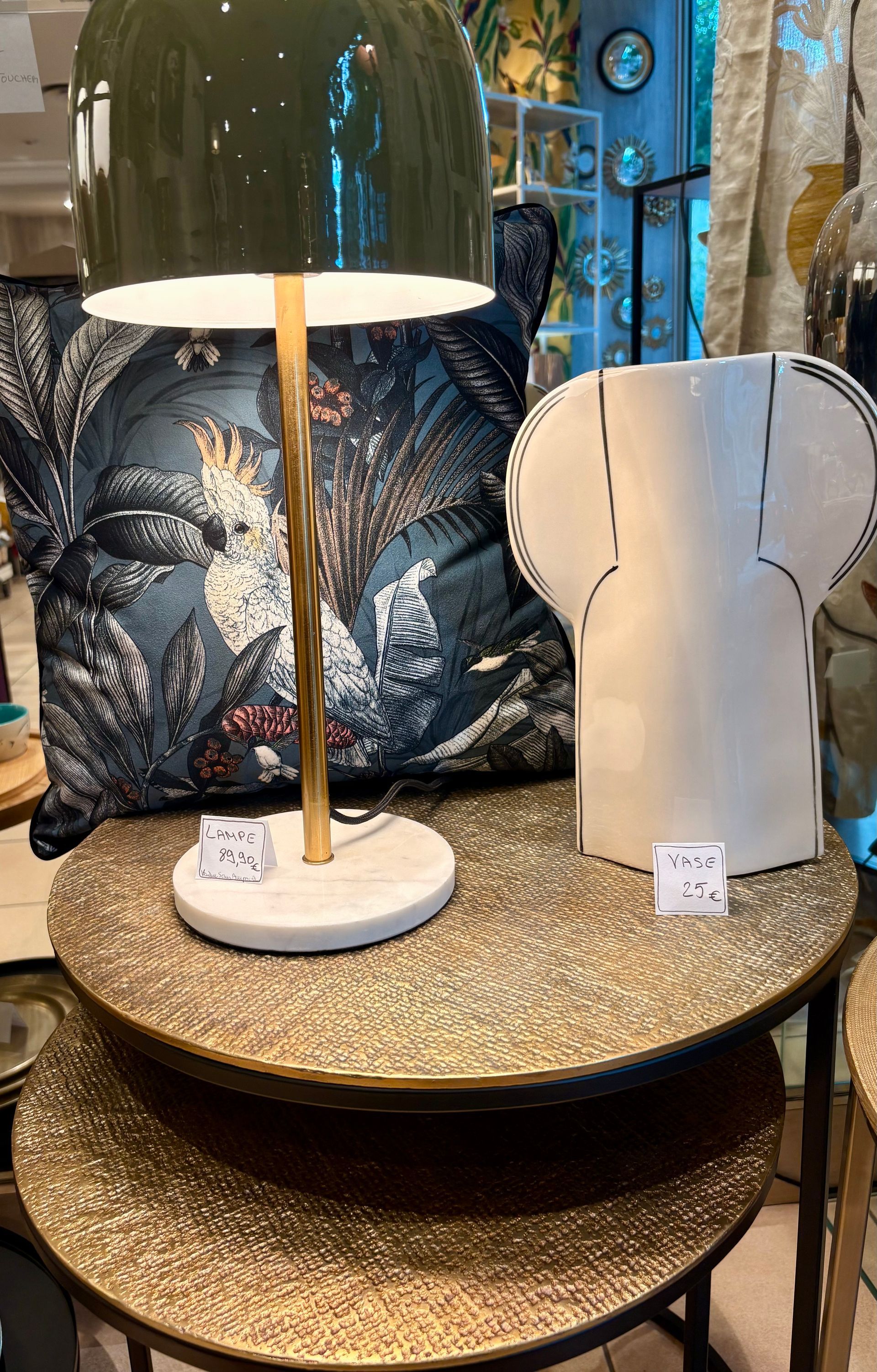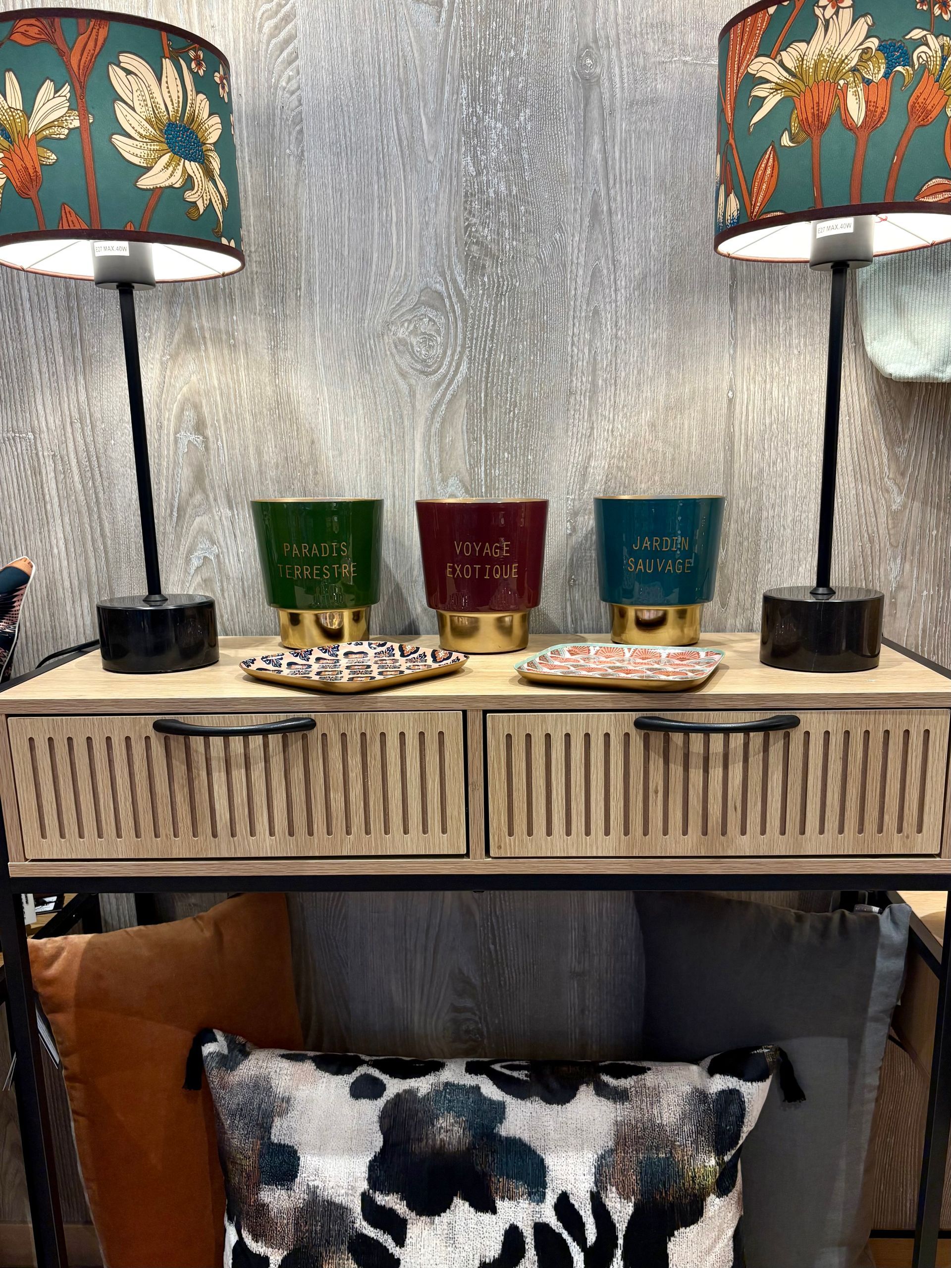 Dans la boutique, vous trouvez une sélection d' objets de décoration, des petits meubles, des luminaires, des bougies, des vases, des cadres, des compositions florales, du linge de table